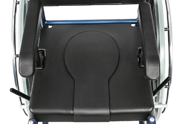 - Крепкие, плотно зафиксированные подлокотники – обязательное условие покупки санитарного кресла для человека, который способен садиться и вставать с устройства самостоятельно, без посторонней помощи.